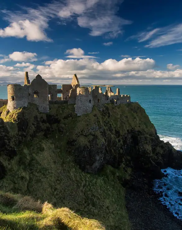 Dunluce Castle, perched dramatically on the edge of a basalt cliff along Northern Ireland’s stunning Causeway Coast, is a must-visit for history enthusiasts and sightseers alike. Dating back to the 16th century, this medieval fortress offers a fascinating glimpse into the past with its ruins that echo tales of battles, sieges, and the turbulent history of the MacDonnell clan. The castle’s striking location provides breathtaking views of the North Atlantic Ocean, making it a photographer’s dream. Visitors can explore the remnants of the castle’s towers, walls, and courtyards, as well as the nearby caves and coves that add to the site’s mystique. Just a short drive from The Fiddlers Rest, Dunluce Castle is a captivating destination that combines rich heritage with stunning natural beauty.